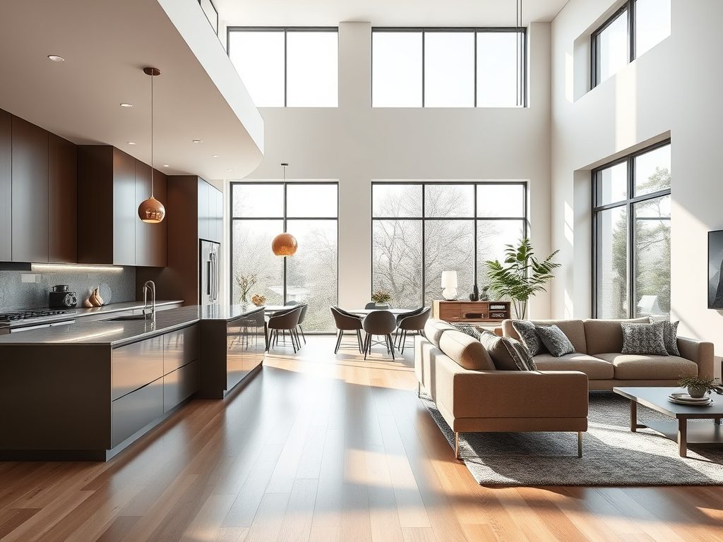 Nie zapomnij o oświetleniu. Planuj je warstwowo — zastosuj oświetlenie zadaniowe w kuchni oraz dekoracyjne w salonie. Dobrze sprawdzą się także dywany i ażurowe przepierzenia, które podkreślają podziały stref. Utrzymuj jednolitość kolorystyki oraz koordynację materiałów, aby stworzyć przyjemne i spójne wizualnie wnętrze.